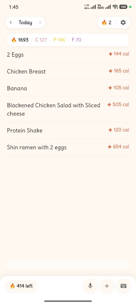 Just type what you ate - Meow's AI calculates calories, protein, carbs and fat instantly. No barcodes. No searching. Done in seconds.